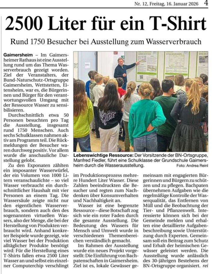DK Bericht vom 16. Januar 2026 DK Bericht vom 16. Januar 2026 Bericht im Donaukurier am 12.12.25 DK Bericht vom 5.Dezember DK Bericht vom 20.November DK-Bericht vom 26.September "Auf dem Sprunge" in Wettstetten DK Bericht vom 19.September "Clean Up Retzbach" DK Bericht vom 22.Aug. BN Exkursion Eitensheimer Flur DK Bericht vom 22. August DK-Bericht vom 8. Juli DK Bericht vom 19.06.25 über die Exkursion "Orchideen am Reisberg" am 1.Juni. DK 25.4.25 vom Vortrag Naturnaher Garten im Backhaus Gaimersheim am 1.April DK vom 14.3.25 von der Märzenbecherwanderung am 9.März. DK Bericht vom 14.2.25 von der Nistkastenkontrolle am 8.2.